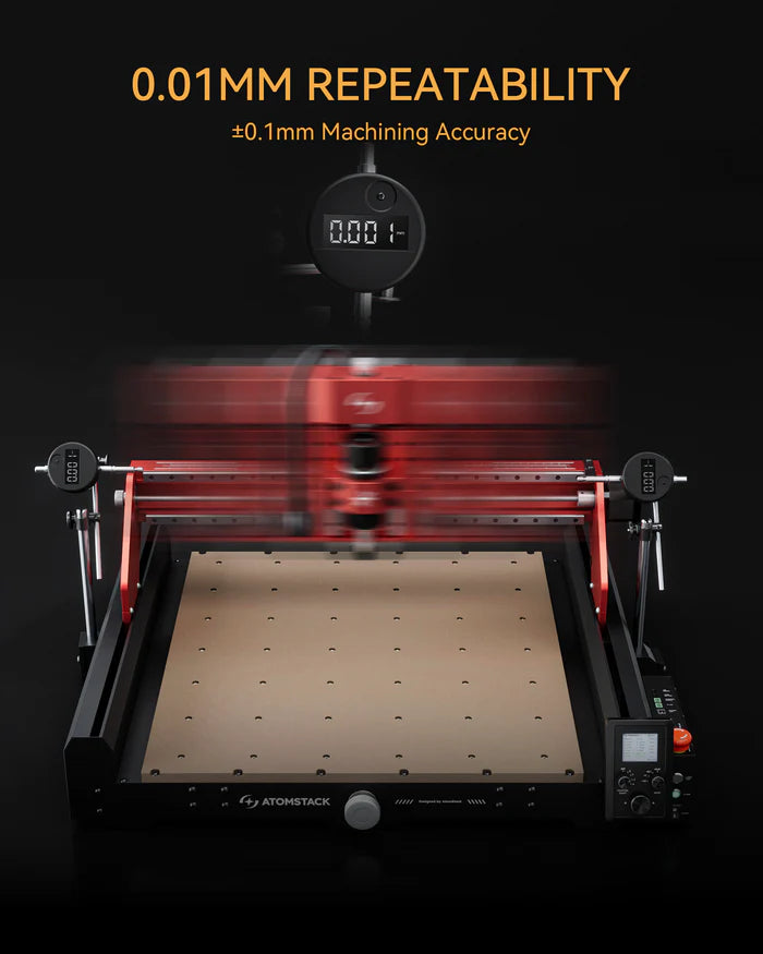 Experience industrial-grade precision and professional reliability with the AtomStack C4 Pro, the ultimate desktop CNC router that merges power, simplicity, and speed. Designed for creators, makers, and engineers, the C4 Pro delivers flawless accuracy for intricate designs, carvings, and prototypes. With a large 420×420mm working area, rigid all-metal frame, and 70% pre-assembled design, setup takes just 10 minutes, letting you start creating right away. Boasting up to 12,000 RPM spindle speed and 2000mm/min movement speed, this machine ensures smooth, detailed, and consistent performance for every project.