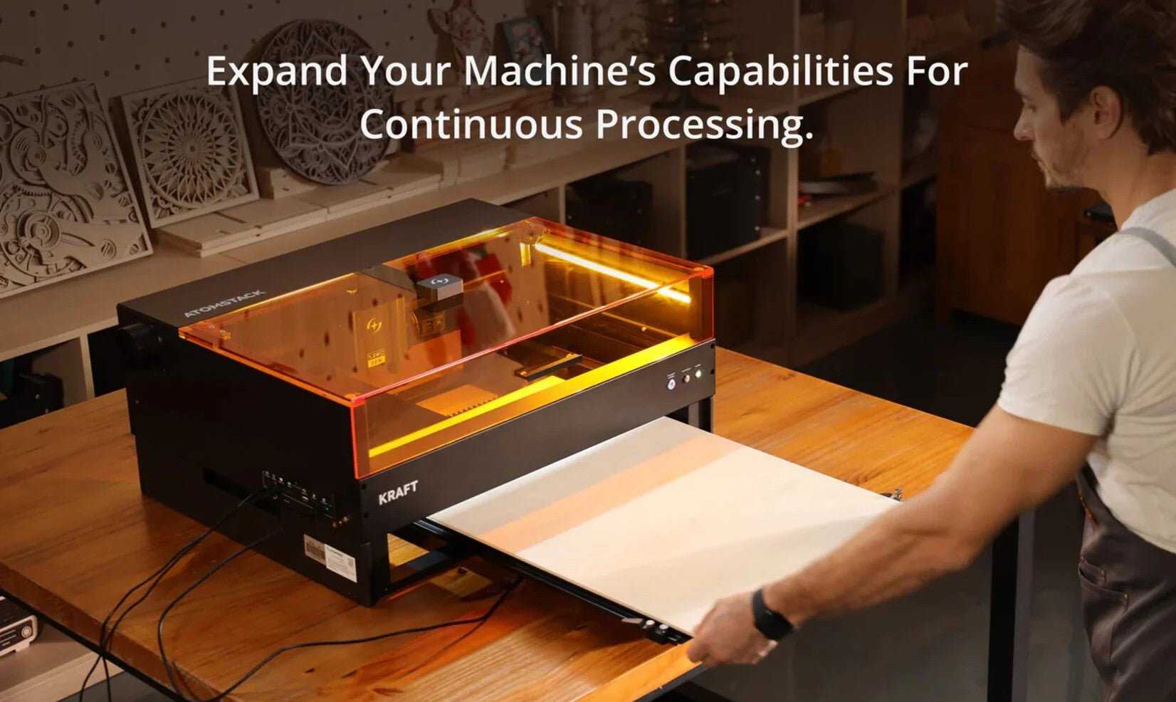 The H4 Riser Base gives your AtomStack Kraft the clearance needed for the R6 Rotary Roller and R8 Rotary Chuck add-ons and the R7 Pro Conveyor Feeder. Engineered for rigidity and vibration control, it delivers stable, precise engraving and consistent focus across every job.