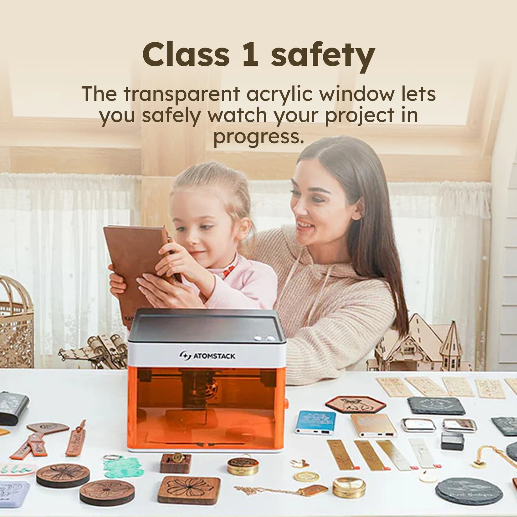 Unlike other laser engravers, the laser automatically shuts off when you open the door of the enclosure. It also has a tilt sensor that stops the machine if it falls. This keeps your kids and pets safe.