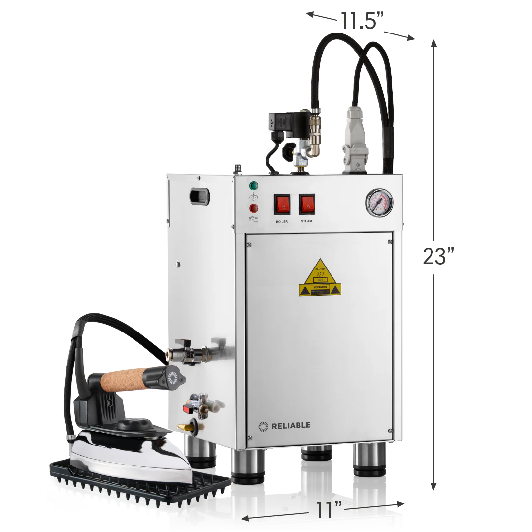 Take garment care to the next level with the 8000BU Professional Boiler Unit, engineered in Italy for unmatched performance and flexibility. This advanced steam generator is designed with a 4.5L stainless steel boiler and can be connected to an external water feed (water line not included), giving you the option for unlimited continuous steam. Built with durability in mind, it features a heavy-duty contactor switch and a blowdown valve for easy maintenance, ensuring long-lasting performance. Paired with the 4100IR Steam Iron and its patented ISO™ Steam Technology, the system delivers ultra-dry steam through a 30-chamber soleplate for precise penetration and crisp, professional finishes on every garment.